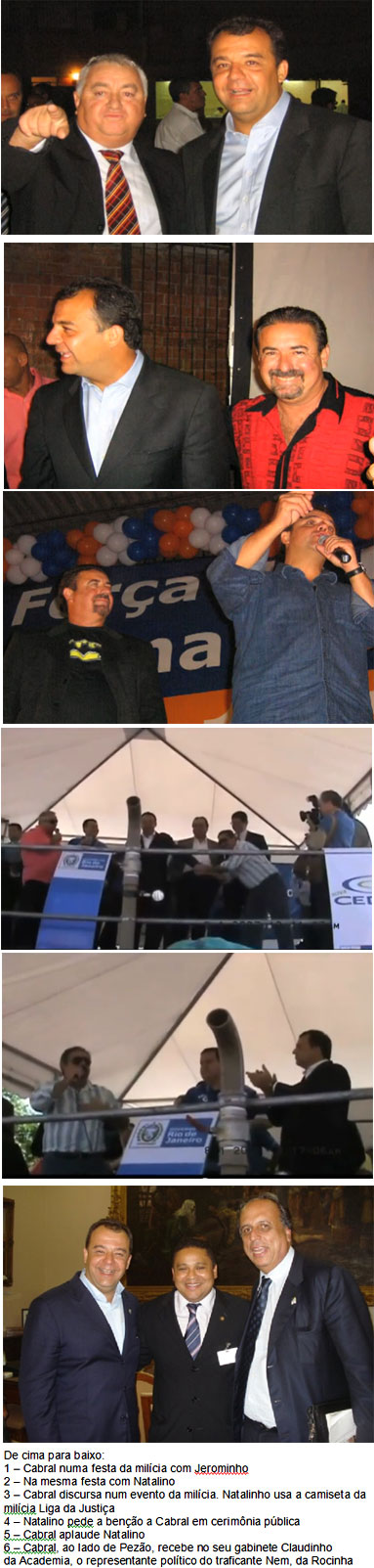 Em tempo: Reproduzo mais uma vez as fotos da amizade fraterna entre Cabral e Natalino e Jerominho, e depois com o Claudinho da Academia, o representante do traficante Nem na política. Por conta dessas amizades o Rio paga mais caro o botijão de gás.